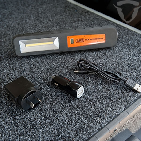 Using high quality 600 lumen LEDs, the beam pattern on the ARB Adventure Light floods the area with light and being able to position the work light with either strong magnetic points or fully flexible nylon hooks provides light to the area you need it most.