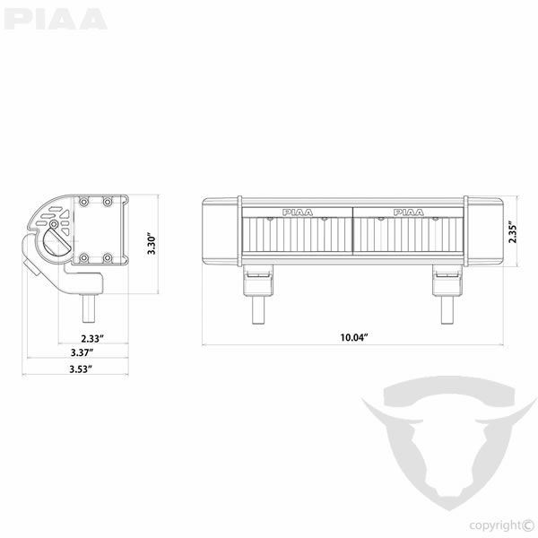 .The PIAA RF10 ten inch LED light bar features Reflector-facing LEDs that project off of an ingenious computer-designed multi-surface reflector offering more illumination than forward facing LED Lights. The RF10 kit includes one light, mounting brackets, and complete wiring harness and detailed installation instructions. Bulb Type: Four 8 watt LED bulbs, with 6000K Color temperature for a pure White output. The low profile design is made up of a cast aluminum housing with high strength poly-carbonate lens. The modular mounting design allows for all RF Series Lights to be connected together to achieve desired length for a wide range of applications.  A beam designed for extreme distances with sufficient side and shoulder illumination Reflector Facing Technology precisely controls output for better beam definition 6000k white output to replicate daylight for better illumination at night with 4 high power LEDs The 10-1/16” wide bar has multiple mounting options for maximum versatility Com