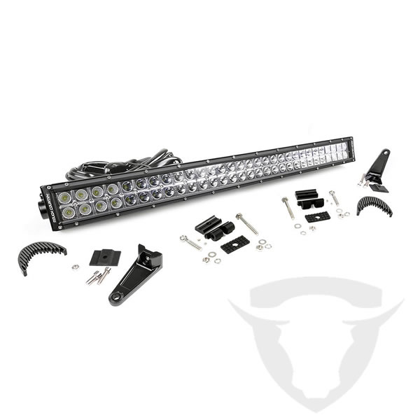 Command the Dark: Stay out later on the trails with Rough Country's sleek 30-inch Dual Row CREE LED Light Bar. With a powerful 14,400 Lumens and 180 Watt output, this LED light is a sight to behold. This all-inclusive kit features an IP67 Waterproof design with a durable, die-cast aluminum housing and included end mounting brackets. Includes our 3 year warranty!