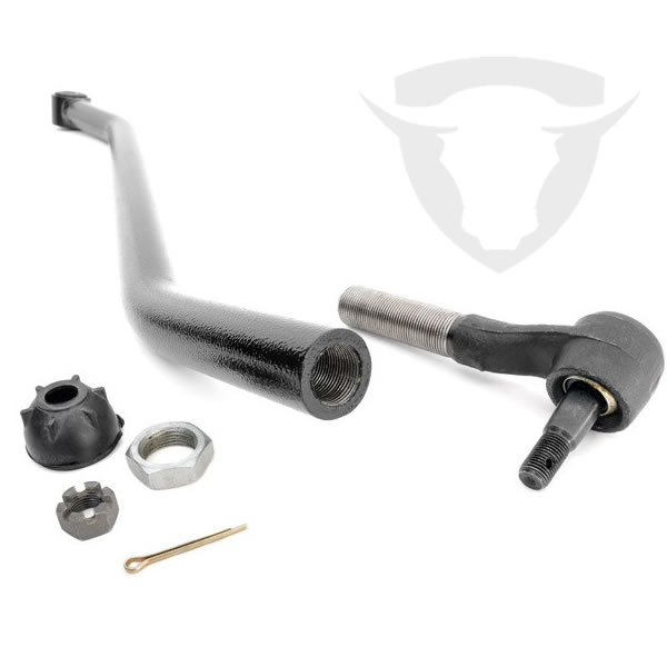 Introducing Rough Country's redesigned Adjustable Track-Bar for select Jeep kits. This redesigned Track-bar is now 33% stronger, featuring a 1.25in outer diameter and a 0.25in thick wall tube for heavy-duty durability. A new and improved Heavy Duty tie rod end now offers a greater range of movement to help keep your axle at the optimum angle in off-road conditions while Clevite rubber bushings ensure maximum vibration dampening and promote a longer overall lifespan for the part.