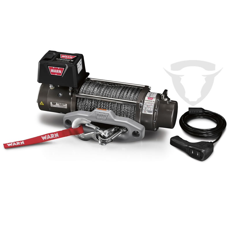 - Available with WARN Spydura™ synthetic rope with matte aluminum hawse fairlead